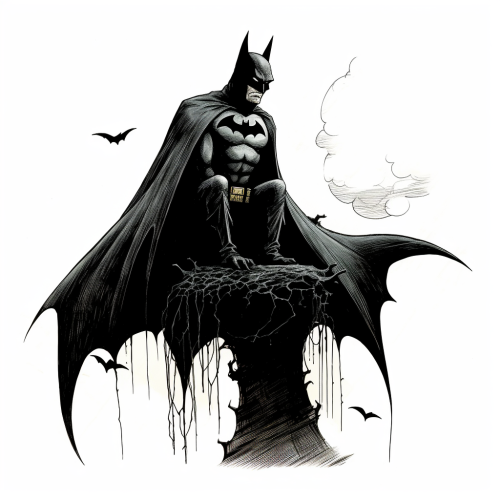 Medieval fantasy comic book line art style. male figure with wings for hands covering his body