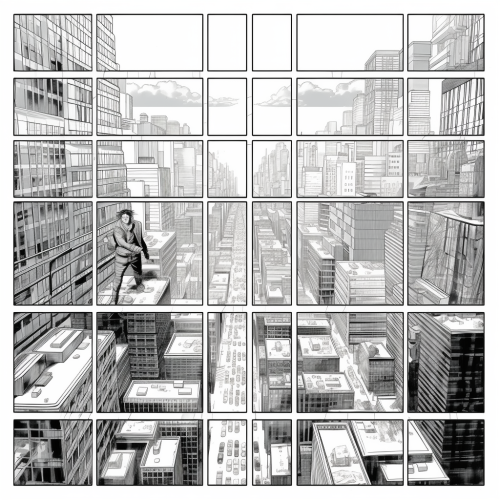 grid for the interior of a comic book, no color, thick black lines, white background, ar--85:110