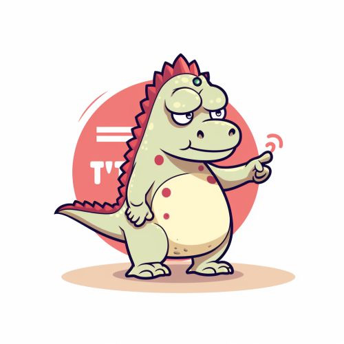 fat dinosaur judgmentally wagging his finger in a “tisk tisk” motion sign, signaling “that’s a bad idea”. judgemental, eye-his-eyes, saucy, tiny-sized, annoyed, cute, sassy, trendy, vector style, flat graphic illustration, white background, in the style of The Oatmeal comic