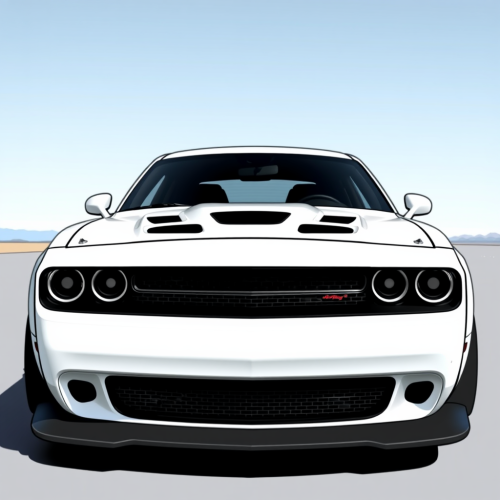 Illustrate a coloring page of a Dodge Charger Daytona, Daytona International Speedway. Only black lines. Coloring book for kids.