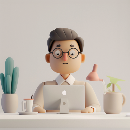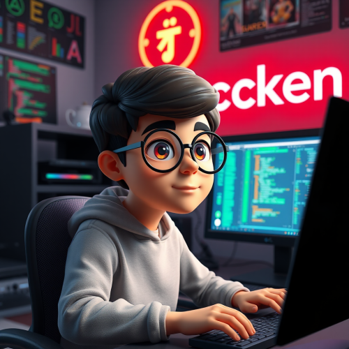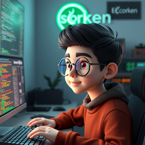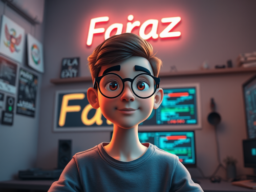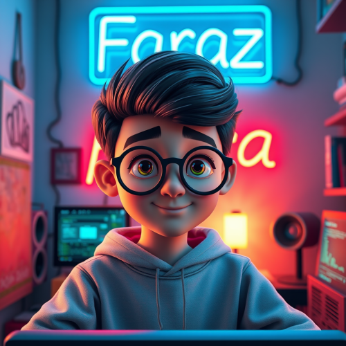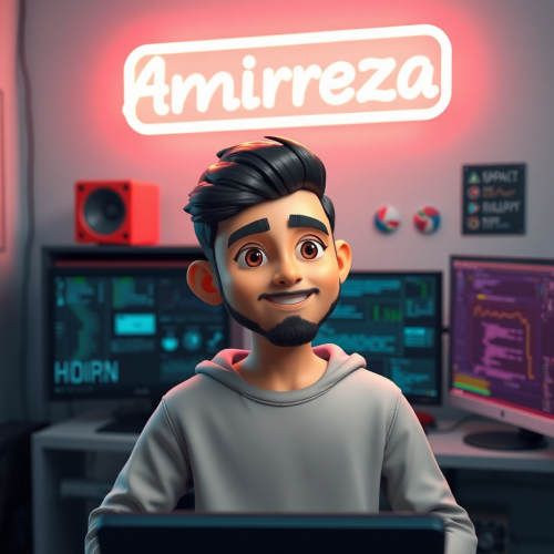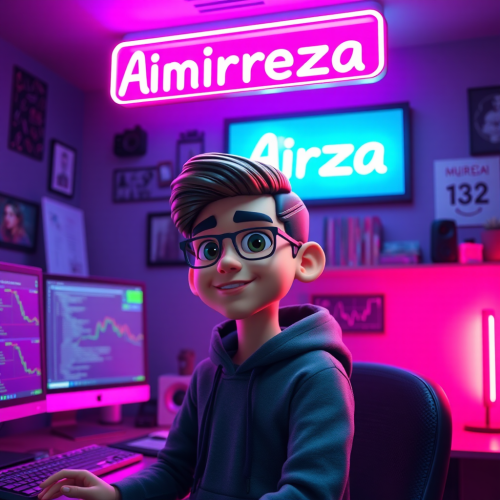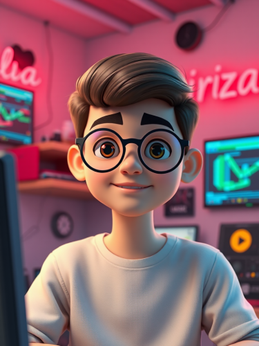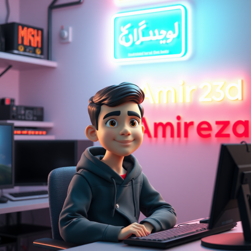 3D Avatar of Iranian boy in programming room