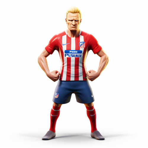 Erling Haaland, wearing atletico de madrid kit, full body, as a cartoony 3d avatar, in the style of pixar, white background --v 5.2
