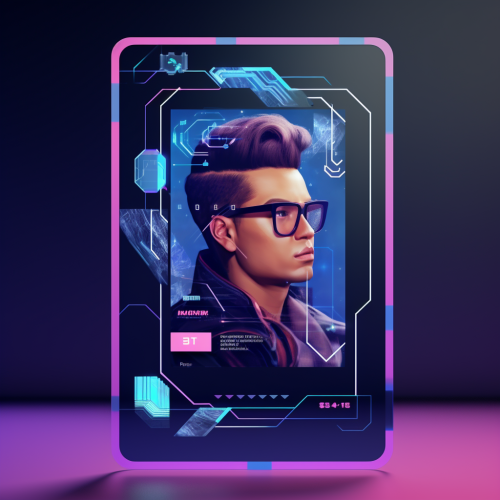 NFT avatar card concept for a creator on the freelance platform of the future. Minimalistic design, glass, refraction, 3D