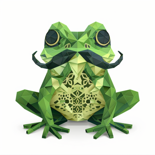 vector illustration of a an origami chinese frog with a mustache, paper-cut style, rearing up, green flat color, isolated on a white background --v 6.0