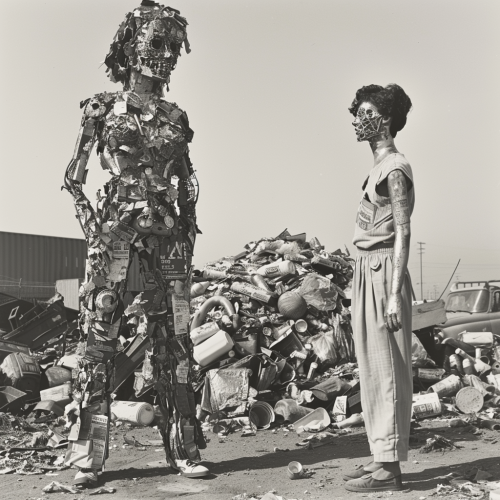lady made of garbage and Man made of trash, 1980s phone photo --v 6.0 --style raw