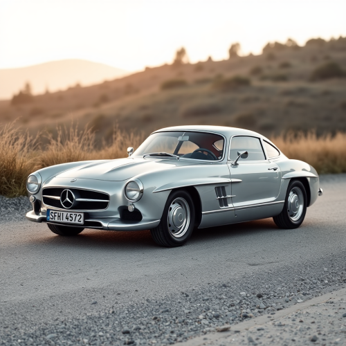 A vintage drawing in high detail of a deep black Mercedes-Benz SL600 from the year 1995 , viewed from the front with an aggressive stance. The background features a sepia-toned vineyard setting, with rows of grapevines leading back to a majestic castle on the horizon. The edges of the image are jagged and rough, giving it the appearance of a torn, old photograph. The sleek, dark form of the SL600 stands out against the warm, aged look of the vineyard and castle, creating a powerful, timeless atmosphere