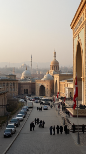 50 years old brazilian man smiling standing looking forward at a camera, 50 years old caucasian man smiling standing looking forward at a camera, full body, playing soccer, one of them holding a soccer ball, wearing black shirt, background of Mercedes-Benz trucks on city parking --ar 16:9