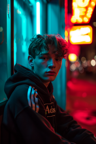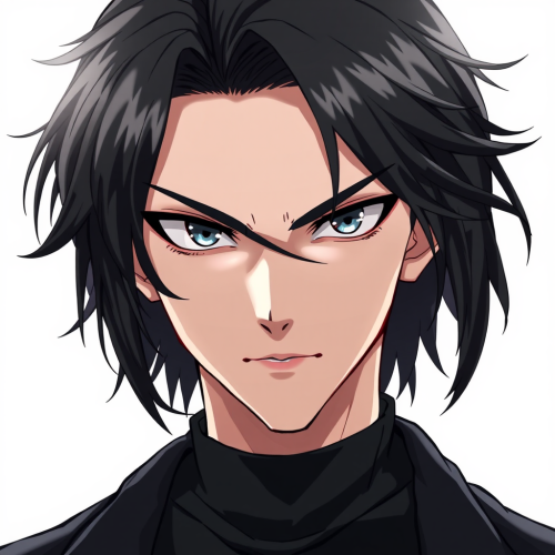 A stylish young man with silver hair wearing black ankle boots, fingerless gloves, grey jacket draped over shoulders, black pants, and a black shirt, with a flowing cape adding a dramatic flair, standing confidently against a dark urban backdrop. The sleek silver of his hair catches the moonlight, creating a striking contrast to the monochromatic ensemble, evoking a sense of mystery and intrigue.