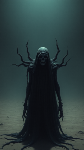 1970s_horror_real_border_creature_with_a_black_hood in the southern desert of Mexico by Antonio Mancini oil painting