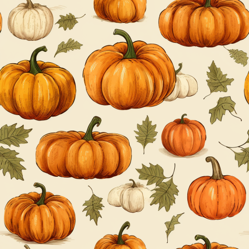 pencil sketched fall themed background wallpaper orange colors autumn leaves jack-o-lanterns --tile