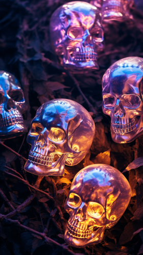 Holography translucent skulls in an autumn setting, vibrant, night --s 50 --v 5.2 --style raw --ar 9:16