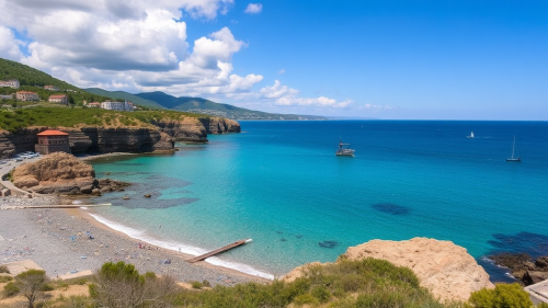 изобрази море, лодку, на лодке прыгающий в море мужчина казах. В море возле лодки проплывает большая рыба. В лодкп двое мужчин смотрят на уплывющую рыбу в рукахту них удочки. В стиле фотореализма, свет воды темноватый в небе летают чайки и другие птици. Вдали виден берег покрытвй зеленным камышем