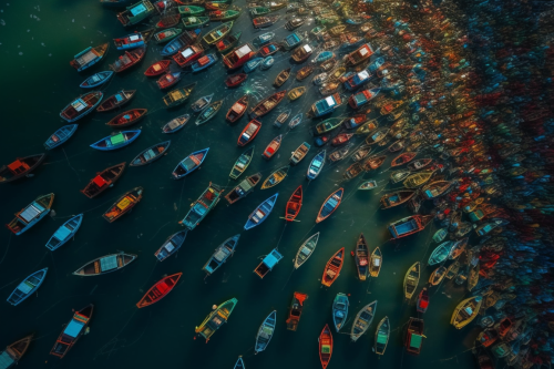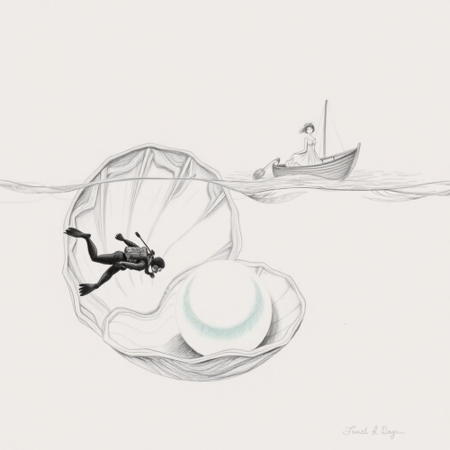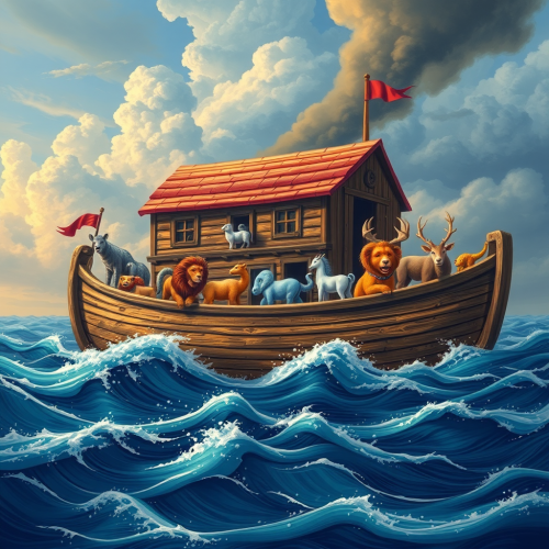 "A small boat floating on a calm, moonlit ocean, with a massive full moon illuminating the scene. Beneath the surface, a giant shark or mysterious sea creature swims, its presence contrasting with the serene, magical atmosphere above. Surreal and dreamlike, with a sense of quiet wonder and a hint of suspense." --v 5.1 --s 250 --style raw