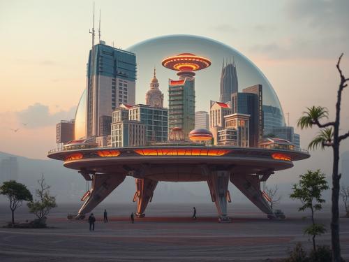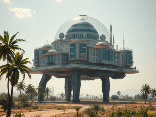 Isometric hex map of a desert with a dome city in the middle --v 5.2