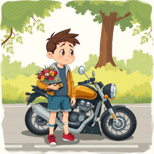 The Little Prince gently placing a protective glass dome over his flower. The flower looks happy, with a small smile, but the prince has a slightly sad expression. Pixar style animation, vibrant colors, emotional scene --ar 16:9 --v 5.2 --style raw
