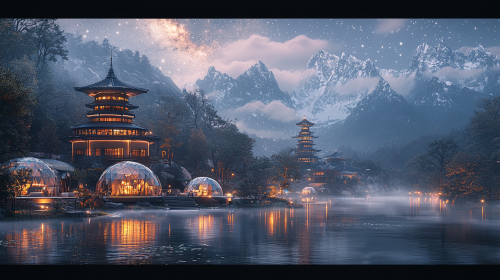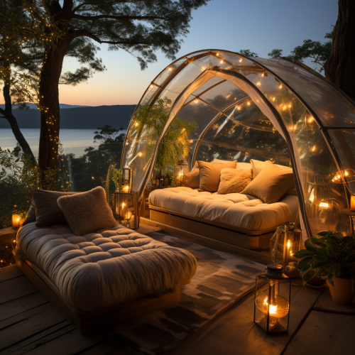 glamping domes camp in Hvar, island, lavender medow, croatia, olive trees 16:9 --v 5.2 --s 750