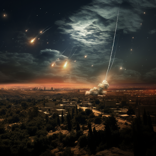 an ultra realistic photo of iron Dome system intercepting rockets over Israel