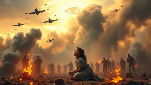 dark evil spirits whispering in the ears of a young black woman, the young woman has brave expression on her face