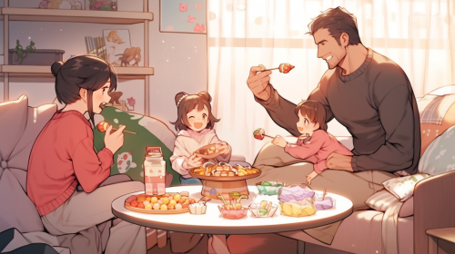 In one house, with four children, one grandfather gave chocolate to the little girl; the grandfather was happy. --ar 16:9 --seed 834907870 --niji 5