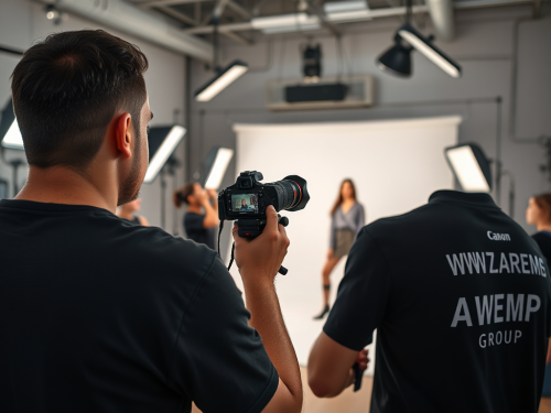 it's a wide fashion design studio belongs to a successful woman. She is perfectism. It has symmetry style like Wes Anderson. this studio has artworks with different colors. very artistic, kind of like installation art. There are fabrics on the office desk, a modern chair is in front of the desk. The whole style is modern. The wall is bit of industrial. tidey, cinematic, stylish, like in a film of Tom Ford. The studio is like a womb. super detailed, photorealism, movie shot, cinematic light, has mannequins, film color, 4K resolution