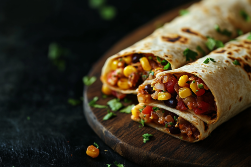STYLE: Close-up Shot Top view | EMOTION: Tempting I SCENE: Viral Tortilla Wrap | TAGS: High-end food photography, clean composition, dramatic lighting, luxurious, elegant, mouth-watering, indulgent, gourmet | CAMERA: Nikon Z7 | FOCAL LENGTH: 50mm | SHOT TYPE: Close-up | COMPOSITION: Top view Centered | LIGHTING: Soft directional light | PRODUCTION: Food Stylist --ar 3:2
