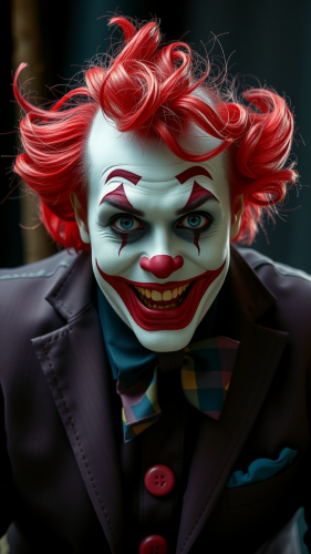 Gangster Clown Hyperrealistic, Gangster, Clown, Smoking a Cigar, Shot of whiskey, looks like arthur morgan as a clown, clown nose, clown face paint