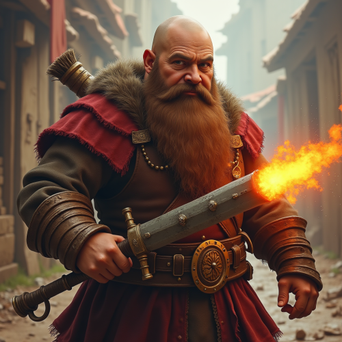 A Roman ancient soldier in armor, holding a shield in the left hand, and spear in right hand, full-body standing pose, white background, very photo realistic style, simple lines, no shadow, red color scheme, iron chestplate, red tunic, brown pants, yellow boots, two stripes of cloth tied around the waist. The man is wearing golden rings as jewelry. There's also a small Roman cross symbol drawn on his right shoulder. --s 1000 --q 2