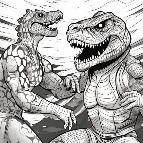 black and white sharp lines dynamic action coloring book style illustration, teen Beyonce in a luchadores style professional wrestling match against an anthropomorphic crocodile