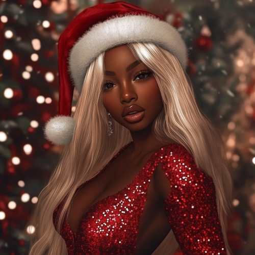a beautiful African American woman with long blonde hair wearing a santa hat and red sequin dress, santa, holiday vibe, wearing santa hat, christmas, wearing a santa hat, Nene Thomas, santa claus, lizzo, holiday season, imvu, ebony, festive, photo of a black woman, wig, merry, divine, promotional picture, ☁🌪🌙👩🏾, qiyana, vixen