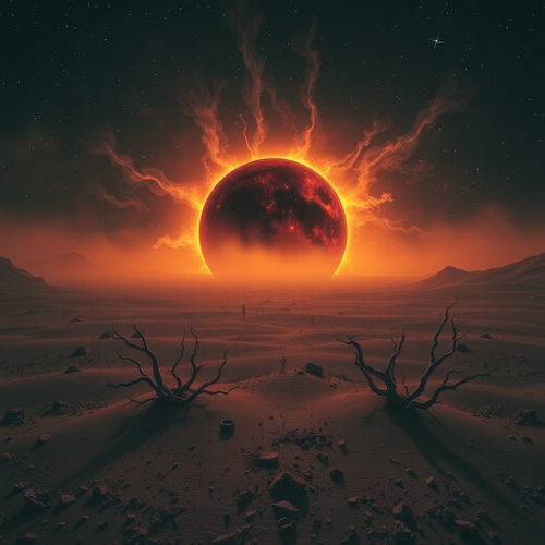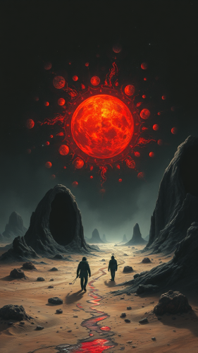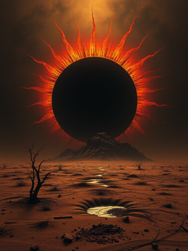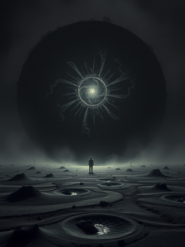 I have seen horrors beyond comprehension. Beautiful faces melting into the sands of time. Hero’s wandering into rot. The black sun burns all, bright. Surreal. Abstract. Cosmic horror. Awe. Wide lens. Desolation.