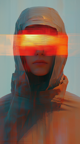 a detailed portrait of a person standing in a vast desert, holding their hands in front of their face, shielding their eyes from the bright, radiant sun. The cinematic and atmospheric mood is intensified by the sun's glowing yellow and orange rays, creating long shadows across the sand dunes. The figure’s silhouette contrasts with the blinding sunlight, and their futuristic, translucent glasses reflect the warm hues of the desert. The air feels thick with mystery, and the horizon blurs into a surreal, dreamlike scene with faint holographic distortions, lighting moody, colors warm, mystical --v 6.1 --ar 9:16 --sref 644709547 --q 2 --style raw --s 750