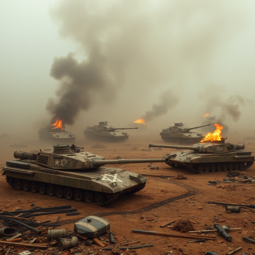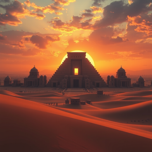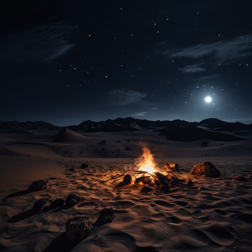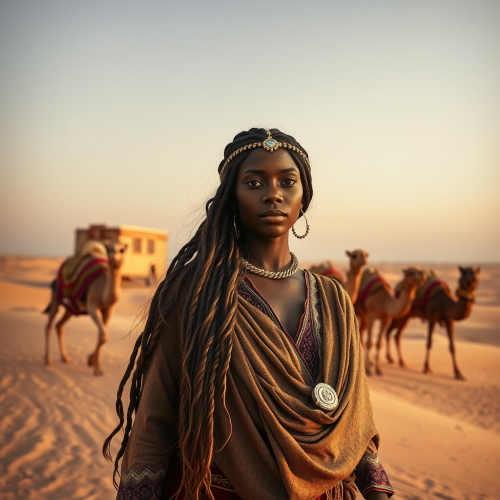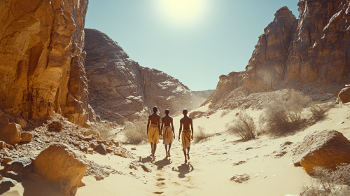 cinemtic scene. a hot day on a desert with the sun in full glareThis visual representation captures the essence of African mythology, This is an ultra-realistic photograph captured on high-resolution 35mm film. --ar 16:9