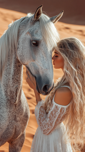 fantasy art, angel bad girl with long white wings, wavy blonde hair and feminine angelic white robes, with the desert sun in the background --no jewelry --ar 9:16