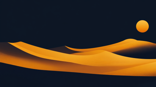 flat yellow gold image in the right part of the black gradient background, round gradient, dark blue color in the center, black is a primery color, use the image on the desert topic --ar 16:9