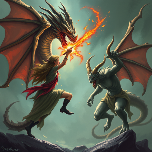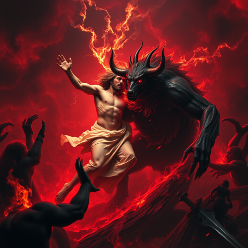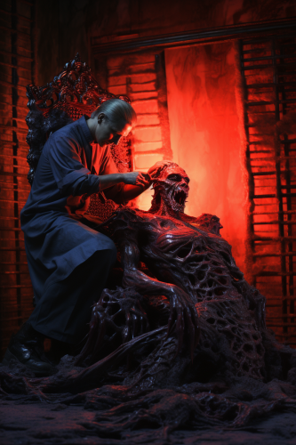 a demon giving a lady a relaxing deep tissue massage in hell --v 5.2 --ar 2:3