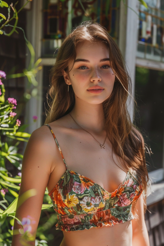 Design a minimalist style summer dress with a pastel color scheme and floral pattern, suitable for casual outdoor activities. The design should have a fitted silhouette