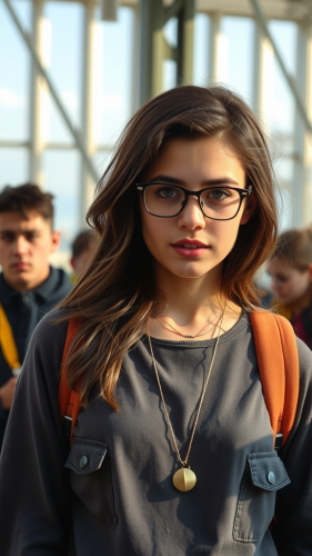 a real 25-year-old Indian female student with a curious and determined expression, sitting in front of a laptop with an open coding interface or AI model dashboard on the screen. Character Details: Age: 25 Ethnicity: Indian Clothing: Casual, modern attire (e.g., t-shirt, jeans) Expression: Thoughtful, intrigued, and motivated Background Suggestions: A minimalist, modern workspace or study area with subtle tech-related elements (e.g., books, gadgets) A blurred cityscape or startup office environment, conveying innovation and growth A neutral, gradient background with subtle coding or tech-inspired patterns Style: Realistic, detailed, and well-lit Colors: Vibrant, yet muted (avoid overly bright or distracting) Facial expression is the focal point
