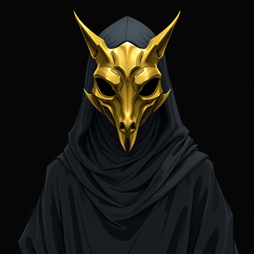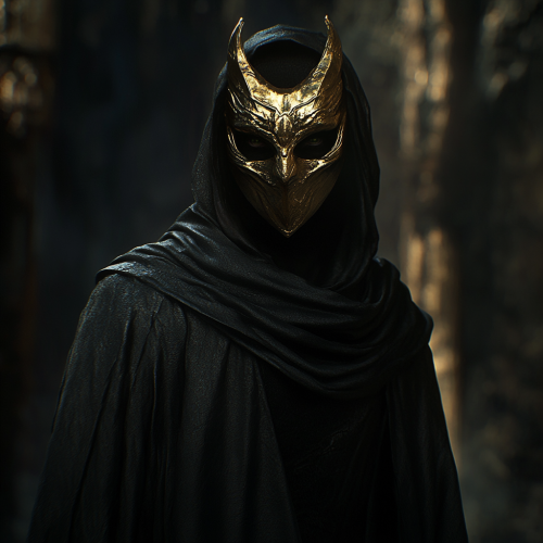 a human cultists dressed in black robes wearing a thin golden mask shaped like a devils face, hand-drawn, fantasy concept art, Unreal Engine 5 Render, Dark Background, --v 6.1