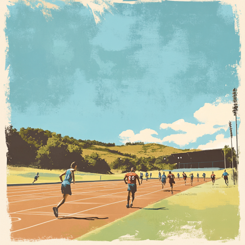 An inspiring scene featuring young athletes training on a bright, open field under a clear sky. They are working hard, showing determination and teamwork. In the background, there are coaches watching and offering guidance, symbolizing the support system helping these athletes succeed. The image conveys a sense of hope, growth, and ambition, with the athletes striving for excellence and a brighter future. The setting feels motivational, with a modern and clean design aesthetic, capturing the essence of empowerment and opportunity.