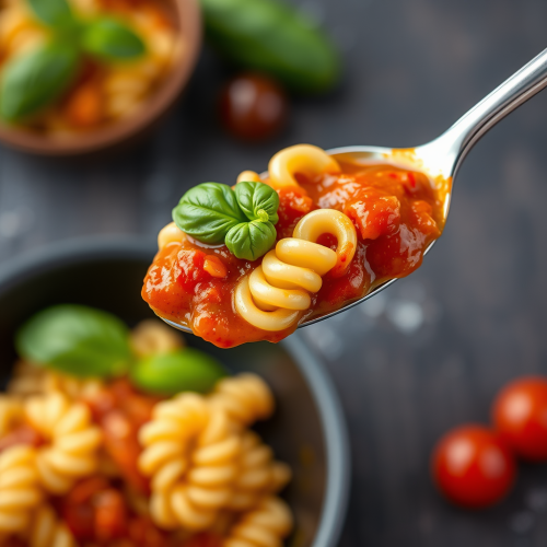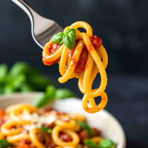 Twin daggers made of uncooked pasta. It has a simple but elegent design. The blade is flat, long, and sharp. The background features tomatoes and basil