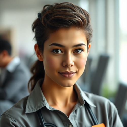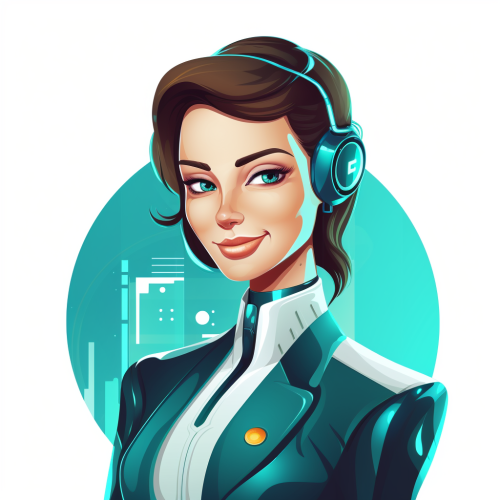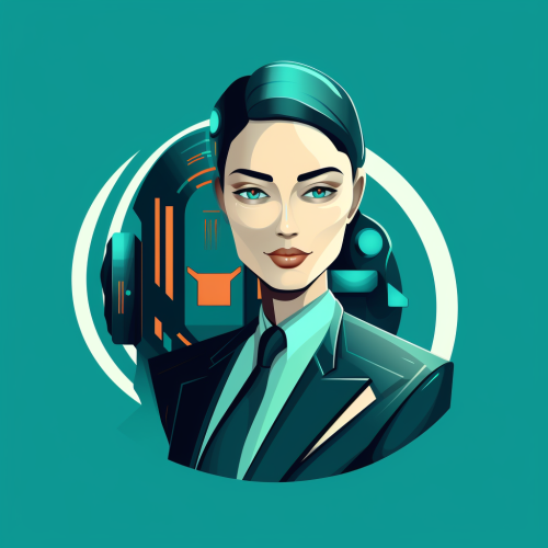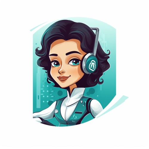 flat logo illustration, friendly, robotic human professional, female ai assistant, teal