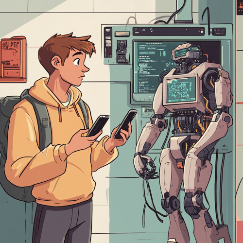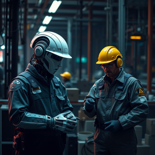 Painter paints a wall sized AI robot-assistant highly detailed realistic painting --no awkward poses, extra hands
