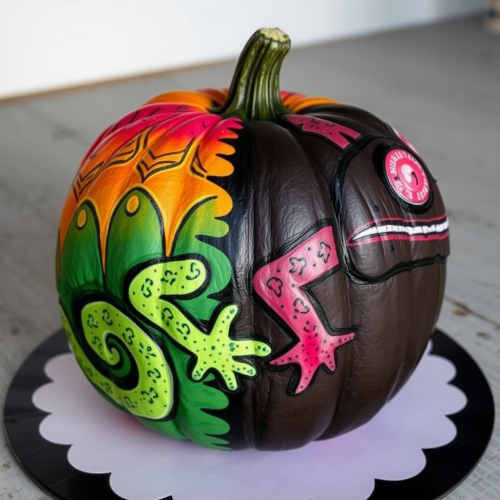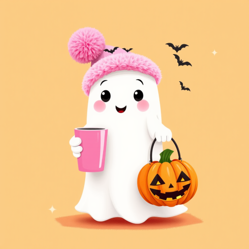 vector graphic vaporwave skeleton lounging in a hot pink beach chair under a glowing moon, wearing sunglasses, and sipping a drink with a tiny pumpkin umbrella.