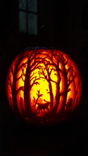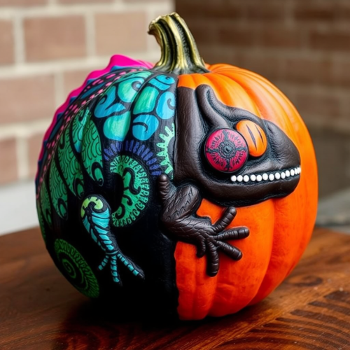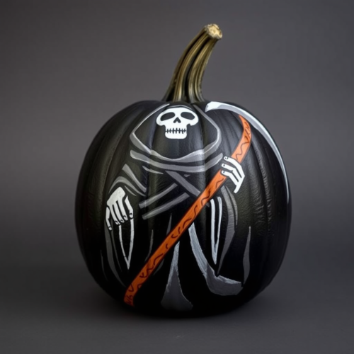 A Friendly Skeleton with Safety Helmet and Pumpkin.