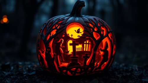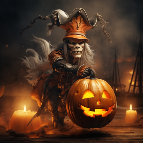 A black T-shirt design with a large, eye-catching design on the front. The centerpiece is a detailed and stylized skeleton, drawn in a slightly cartoonish yet still eerie manner. The skeleton giving off a relaxed, laid-back vibe. In one hand, the skeleton holds up a glass of bourbon, filled with a rich amber liquid that catches the light, reflecting a warm glow. The glass is slightly tilted as if the skeleton is mid-toast, celebrating Halloween with a spooky cheer. The other hand rests on the arm of the chair or perhaps holds a small pumpkin or another Halloween-themed item, like a cigar or a small ghost. Around the skeleton, there are subtle Halloween elements like faint, shadowy bats flying in the background, a crescent moon, and some scattered autumn leaves at the base, giving the scene a seasonal touch. Above the skeleton, in a gothic-style font, the words "Stay Spooky" are arched in a semi-circle. Below, in smaller text, it might say something like "Raising Spirits Since Forever" as a playful nod to the bourbon and the spooky theme. The overall color scheme could include shades of black, white, and gray for the skeleton, with warm tones for the bourbon and subtle pops of orange or red for the leaves and other details. The design balances a sense of fun with just the right amount of Halloween spookiness, making it a perfect shirt for the season. --v 6.0