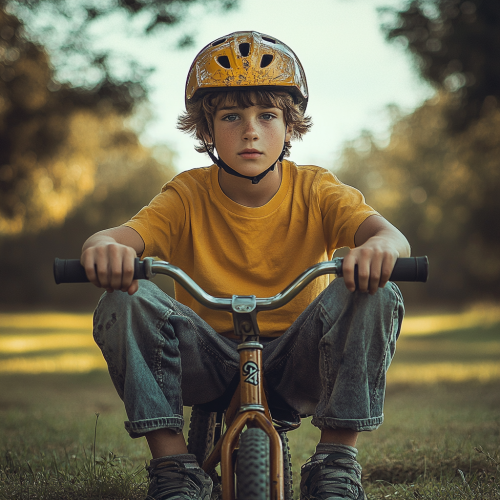 Create a highly realistic image featuring a 4-year-old Chinese girl with exceptionally realistic skin texture, who is wearing a helmet and riding her bicycle in a park. The photograph should capture the essence of childhood joy and freedom, with the girl displaying an expression of delight and curiosity as she enjoys her ride. Emphasis should be placed on the intricate details of the girl’s helmet to highlight safety, and the bicycle as a symbol of youthful exploration. The focus on achieving a lifelike representation of the girl's skin texture is crucial, aiming to convey the natural, vibrant health of a child engaged in outdoor activities. --ar 16:9 --style raw --v 6.0