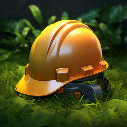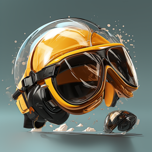 health and safety elements like helmet and protective glasses floating and flying
