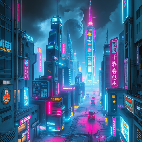 the year is 2042. there is a 14 year old girl, she's a hacker and dressed totally cyberpunk. it's in neo-tokyo. --ar 16:9 --niji 5