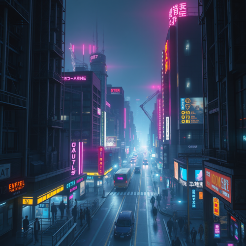 cyberpunk Atlanta - dystopian and dark with neon lights and sleek looking flying cars - blade runner - cyberpunk 2077 - altered carbon