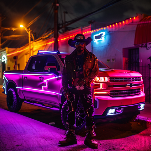 two cyberpunks men with neon red glasses with many light of text "$DEGEN", film photo --v 6.0